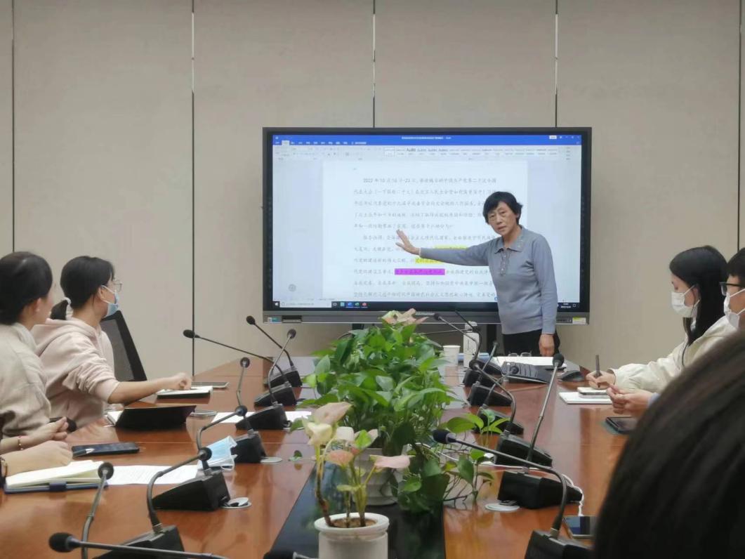 朱勤文结合学习党的二十大精神谈到,习近平总书记代表党的十九届中央委员会向大会做的工作报告,对当前和今后一个时期我们的工作指明了方向,党的二十大修改的《党章》对要求入党的积极分子进行教育和培养以及在青年中发展党员作出了明确规定。学习党的二十大精神,落实全面从严治党要求,切实提高学生党员发展质量尤为重要。她从党员发展材料中存在的问题切入,对提高党员发展工作进行了深入解读,并与会人员进行互动交流,勉励大家落实全面从严治党要求,进一步将提高党员发展质量落到实处。