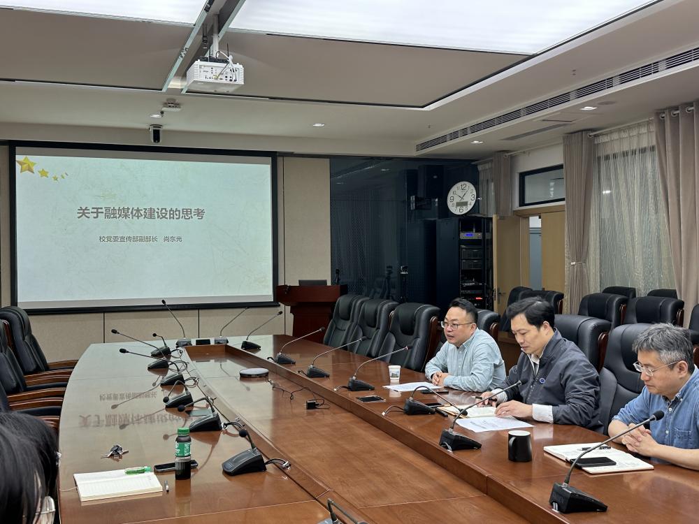 校党委宣传部副部长尚东光作了题为《关于融媒体建设的思考》辅导报告。他提出,全国宣传思想文化工作会议的召开,让全体宣传思想文化战线工作者备受鼓舞、倍感振奋,要把习近平总书记的重要指示精神转化为推动宣传思想文化工作的担当作为,在新征程上勇担新的文化使命,牢牢把握“七个着力”要求,围绕“举旗帜、聚民心、育新人、兴文化、展形象”的使命任务,用习近平文化思想指导学院宣传思想文化工作。