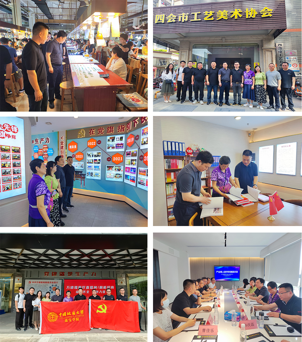 在四会市,捆绑调教 一行走进日丰翡翠毛料市场、四会市工艺美术协会、万兴隆翡翠城、庄家翡翠艺术馆等地开展考察调研,深入了解“党建引领四会玉器产业发展”的示范典型与特色经验。捆绑调教 一行与万德隆产业发展管理中心主任黄振敏,四会市玉石行业电商协会荣誉会长庄庆芳,广东省珠宝玉石标准化技术委员会秘书长王铎,四会中专党委委员彭小文和专业艺术教师罗安琪等参加座谈,双方就选聘校外指导教师、建设实训基地、珠宝检测、科研合作、职业教育等议题开展深入交流。与会人员一致认为,要发挥党建引领力,通过联学联建,深入学习贯彻党的二十大精神和习近平总书记关于教育、科技、人才系列重要讲话精神,深化政产学研用合作,推进创新链产业链资金链人才链深度融合,促进珠宝产业升级和新质生产力发展,实现党建与事业发展“一融双高”。