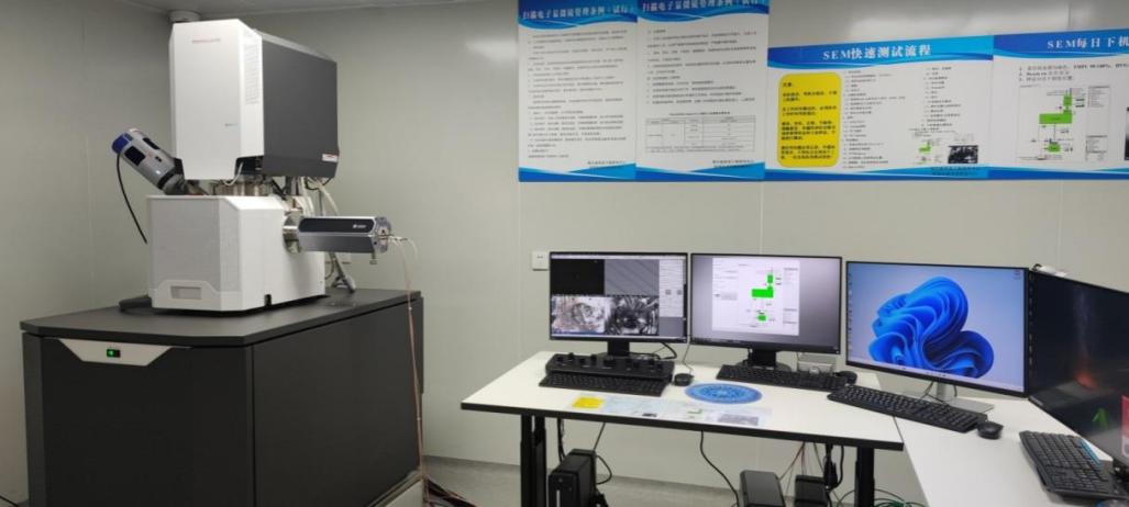 仪器型号为Thermo scientific Apreo 2S,搭配Oxford Ultim Max 100能谱仪、Carl Zeiss Axioscope5光学显微镜及金竟科技阴极荧光成像系统实现样品观察、晶体形态、成分测定、发光性能等多性能的表征。电子分辨率高达0.6nm,10mm工作距离下1.0nm分辨率。放大倍数不低于2000000倍,配备二次电子探测器:ETD、T2、T3及背散射电子探测器T1、ABS。