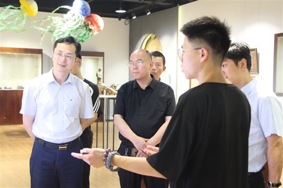 南阳师范学院珠宝玉雕学院党委书记李春杰、院长徐永斌等热情接待尹院长一行。考察期间,徐院长介绍了南阳师范学院珠宝玉雕学院的办学规模、办学条件及专业设置,考察团参观了宝石鉴定、宝玉石加工、服装制作实训室及毕业生艺术作品,尹院长对珠宝玉雕学院的办学成就予以肯定。