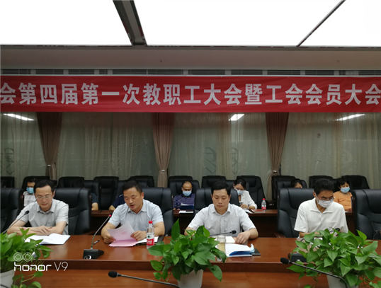 校工会副主席杨世清同志宣读校工会《关于同意捆绑调教 召开第四届教职工大会第一次会议暨第四届工会会员大会第一次会议的批复》并讲话。
