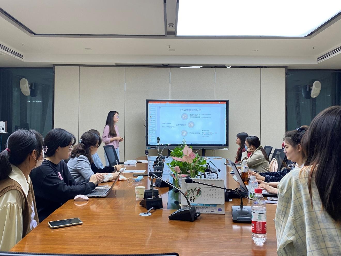 会议伊始,兼职辅导员谢雅亿、赵安迪、李诗分别从自己负责的工作进行了介绍和总结,之后各自谈了自己在工作中的体会和后期对自己工作的展望。