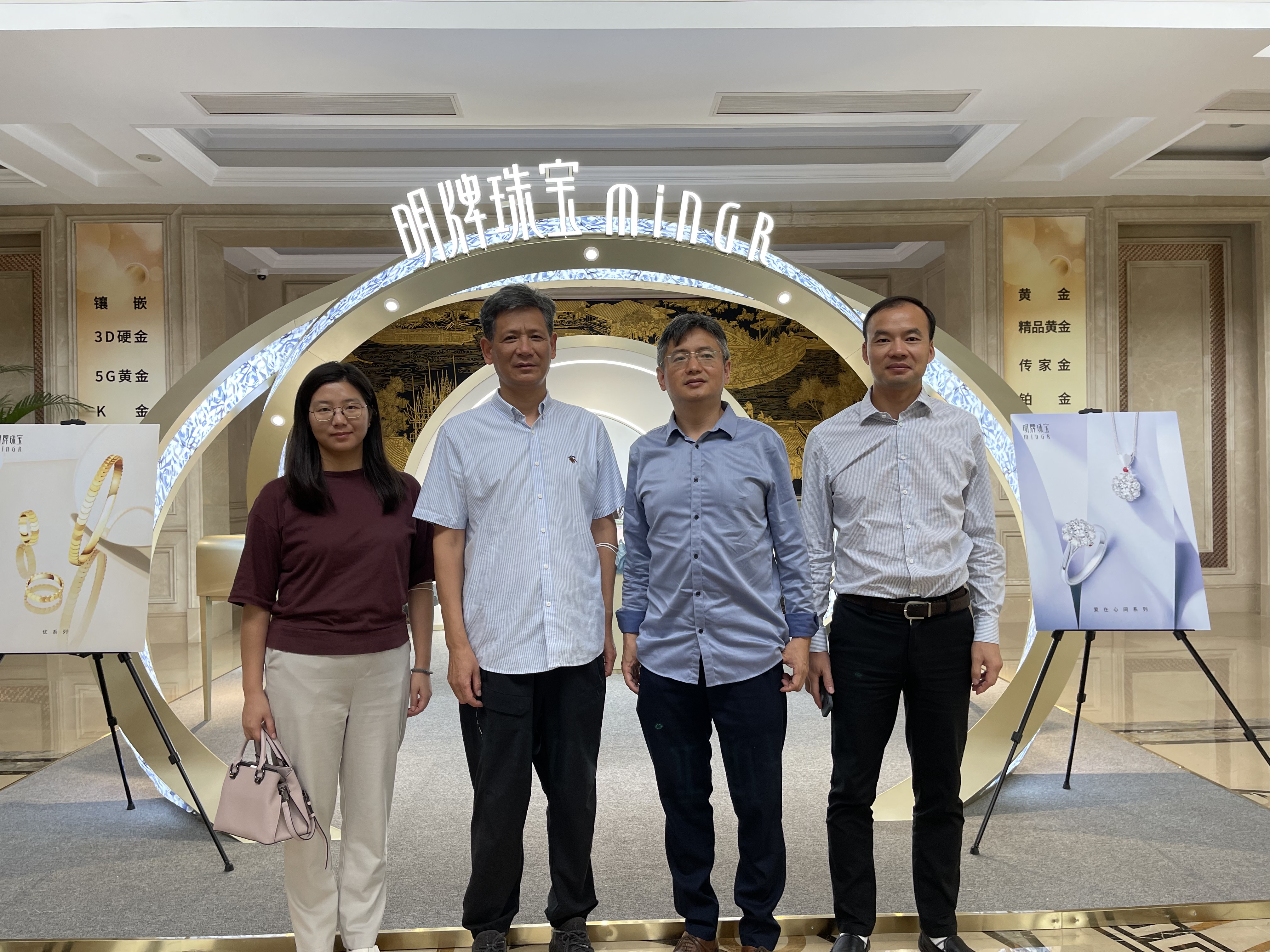 9月2日,调研组与浙江明牌珠宝股份有限公司进行了交流。受到了明牌珠宝董事长虞兔良先生等的接待。企业介绍了其历史沿革与当前的主营业务,双方共同探讨了黄金珠宝行业未来的发展方向,以及对学生在首饰设计、鉴定评估、管理等方面的全方位综合能力需求。