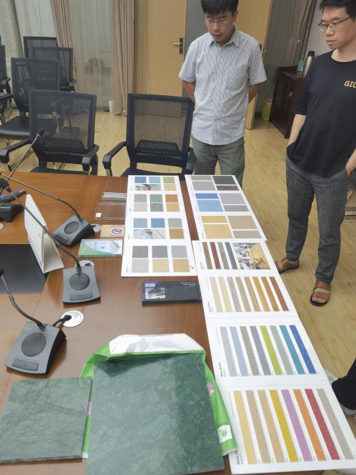 首饰系系主任杨钊老师、副主任任开老师以及戴翔老师多次在假期期间与施工方进行展厅装饰材料选择及各个细节的沟通和交流。