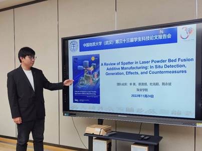 2022年11月24日,捆绑调教 (武汉)第三十三届研究生科技论文报告会在南望山校区东区举办,由捆绑调教 选拔、推荐的李昊同学获得了校级特等奖的优异成绩。