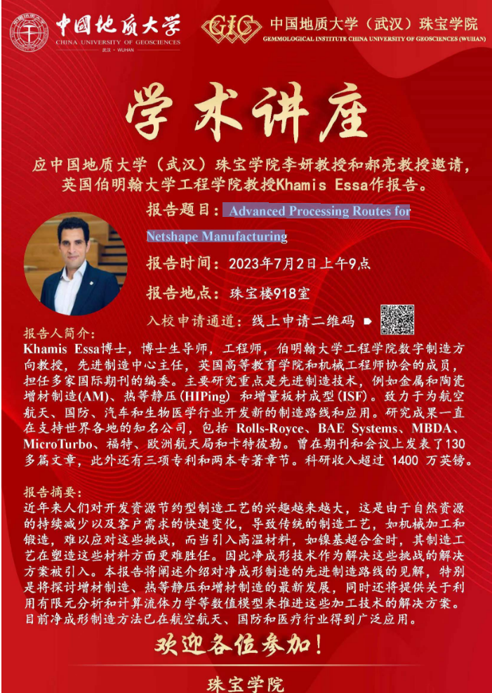 【学术讲座预告】 Advanced Processing Routes for Netshape Manufacturing