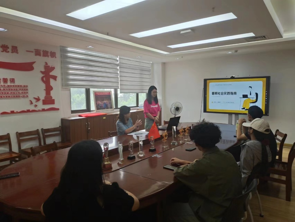 之后,谢雅亿同学分享了自己参加和组织社会实践活动的经验。她首先分享了去年获奖项目与具体内容,也详细地说明了自己对选题的一些经验及指导意见。在分享完选题经验后,谢雅亿同学又分享了自己对于团队组织与分工的想法与经验。同时,谢雅亿以团队任务分配为例,向大家介绍了自己在参加暑期社会实践的心得。