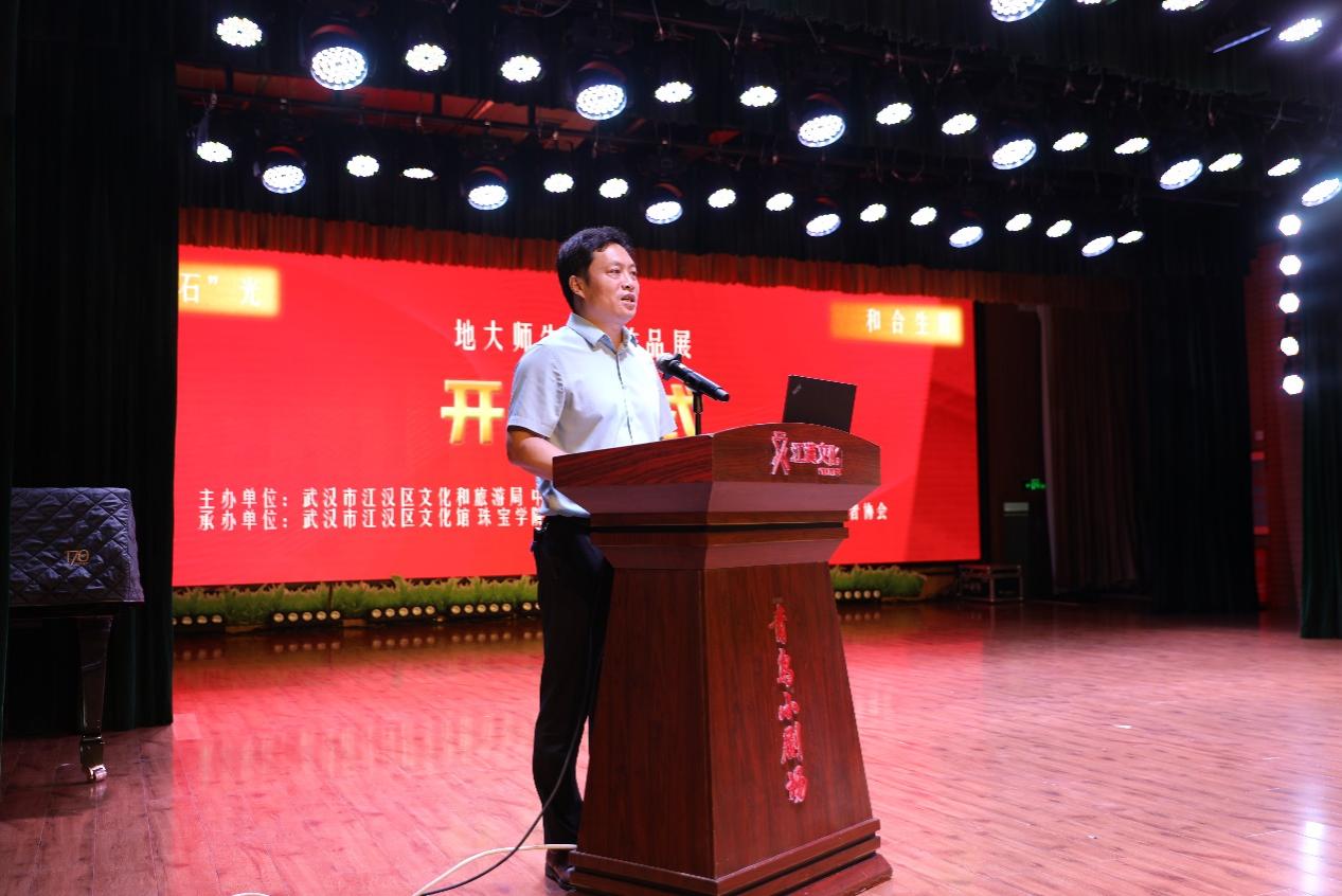 首饰系汪晓玥老师讲话,她介绍了部分优秀展品的精巧构思和文化意蕴,为市民朋友更好的观展及提升观展体验做了很好的导引。