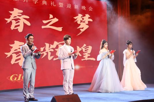 成青春之梦,创青春辉煌。在师生们热切的期待中,在绚烂的灯光下,学生主持人宣布迎新晚会正式开始。
