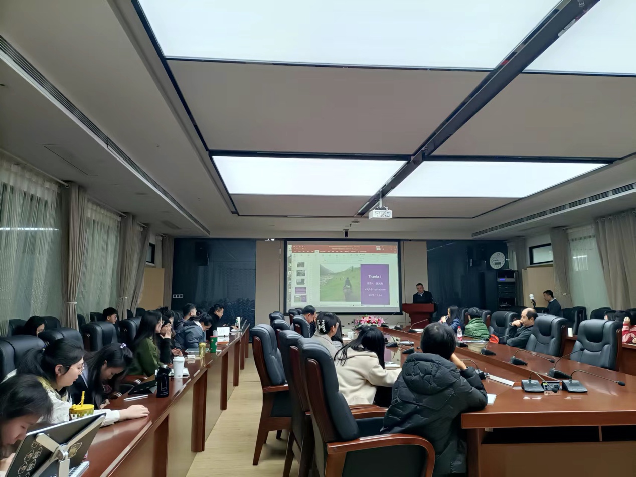 施教授通过丰富的野外调查经历和翔实的研究数据向大家展示了白玉、青玉的形成以及出现油脂光泽的原因三个方面的内容。讲座讨论环节中,施光海教授就和田玉中的石墨包裹体的来源、不同产地中和田玉光泽的差异,以及“透闪石质玉”、“和田玉”、“软玉”的定名问题同师生们进行了激烈的讨论,通过分享自身学习和研究的历程使在座的师生受益匪浅。会后,与会教师就基金申请问题和科研项目合作和施教授进行了深入探讨。(通讯员 刘玲 摄影 刘玲 刘丹)