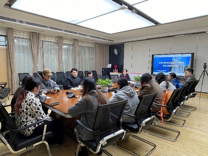汤凡渺老师向大家介绍了当前就业情况。她希望毕委会成员能够深入全体同学,了解同学们落实毕业去向的难点痛点,积极联络学院教师帮扶就业困难学生,并做好过程记录。同时,对于毕业晚会的筹备工作也希望毕委会成员积极建言献策,也希望在毕业晚会中更多的让即将毕业的同学参加,并且形式不拘泥于歌舞类节目。