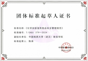 根据《中国质量检验协会团体标准管理办法》的有关规定,由中国质量检验协会组织制定的《化学实验室危险品安全管理规范》(T/CAQI 379-2024)团体标准已按规定程序审查、审批通过,自2024年4月6日起实施。捆绑调教 作为副组长单位与通标中研标准化技术研究院(北京)有限公司、济南市产品质量检验院、安徽省产品质量监督检验研究院、上海浦东新区舟桥职业安全健康事务所、南京市产品质量监督检验院合作研制该标准。余静副教授、陈涛教授分别作为第二、第三起草人参与标准研制。
