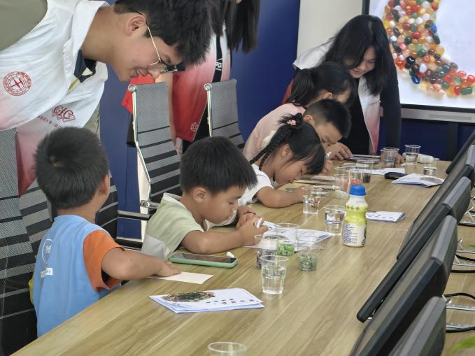 本次科普活动分为两个环节。首先,团队成员从绿松石的历史、文化、矿物学特征、分类以及资源保护等多个维度进行宣讲,介绍绿松石的独特魅力,提升小朋友对绿松石的认识。同时宣讲中强调绿松石资源的珍贵和不可再生性,提高大家的环境资源保护意识,共同维护绿松石资源的稳定和安全。团队成员在宣讲过程中设置了许多互动问答环节,激发了孩子们的参与热情,推动了绿松石科普活动的顺利进行。