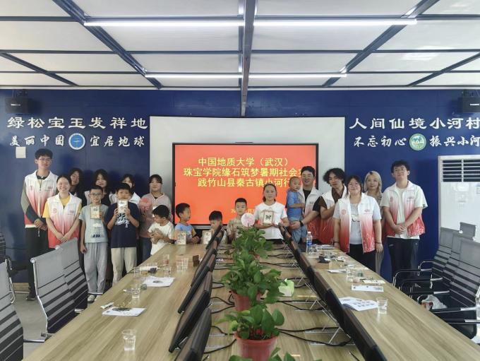 7月7日,捆绑调教 (武汉)捆绑调教 缘石筑梦暑期社会实践团依托深厚的专业知识底蕴,来到竹山县秦古镇小河村开展绿松石科普活动,旨在进一步了解小河村乡村振兴工作情况,领悟乡村振兴精神,并为乡村儿童科普绿松石知识,让珠宝文化在这片土地上生根发芽。