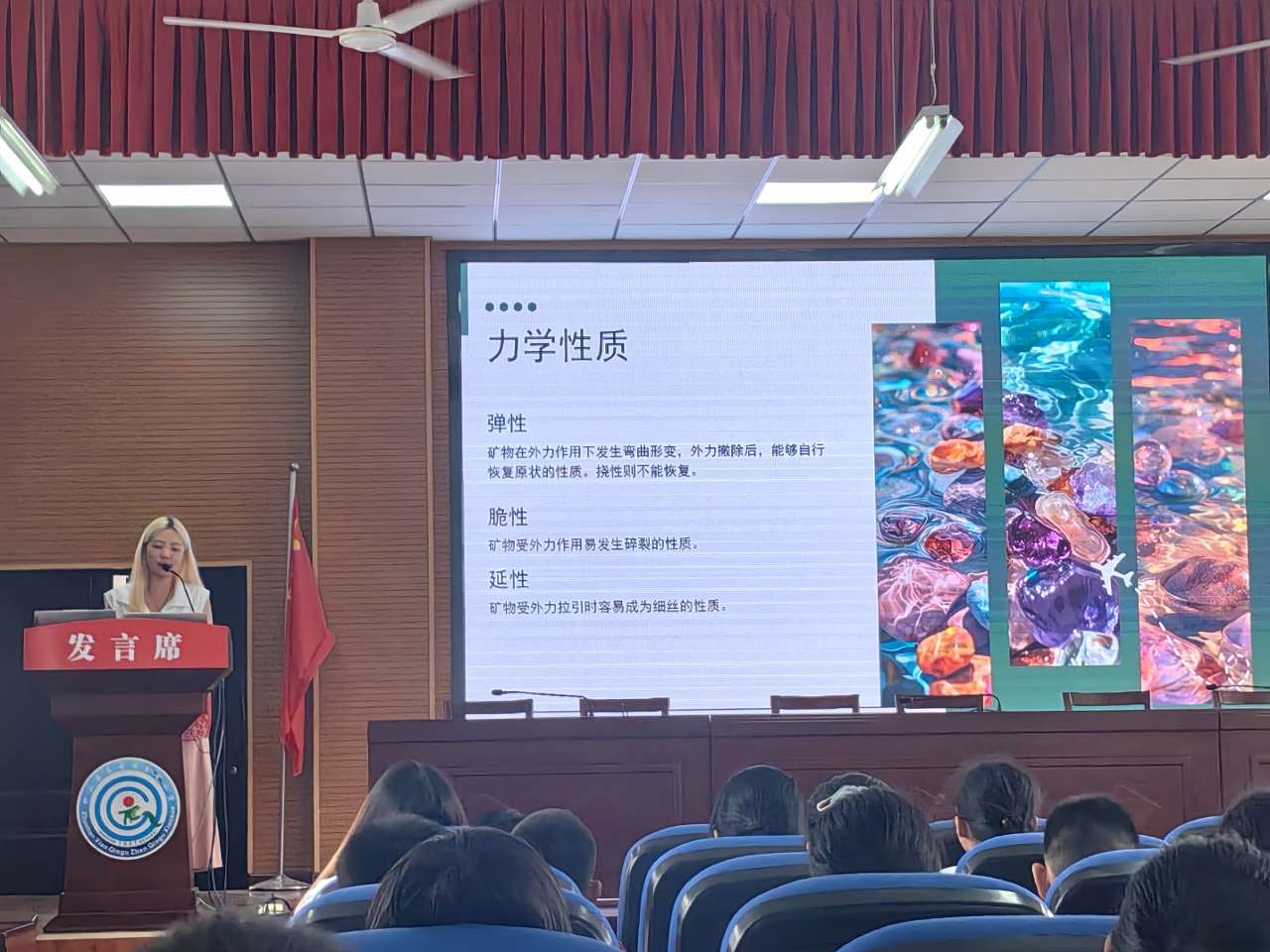 竹山县是我国绿松石主要产地,实践团成员为小学生们准备了《珠宝玉石文化概论》《矿物学基础》《绿松石知识科普》和《探索水晶梦幻色彩》等4门生动有趣的珠宝科普课程,让孩子们感受到来自大自然的馈赠——珠宝宝石、矿物的神奇魅力,开阔了视野。面对孩子们浓烈的好奇心,实践团成员一一细致地解答,并发放小礼品进行鼓励。