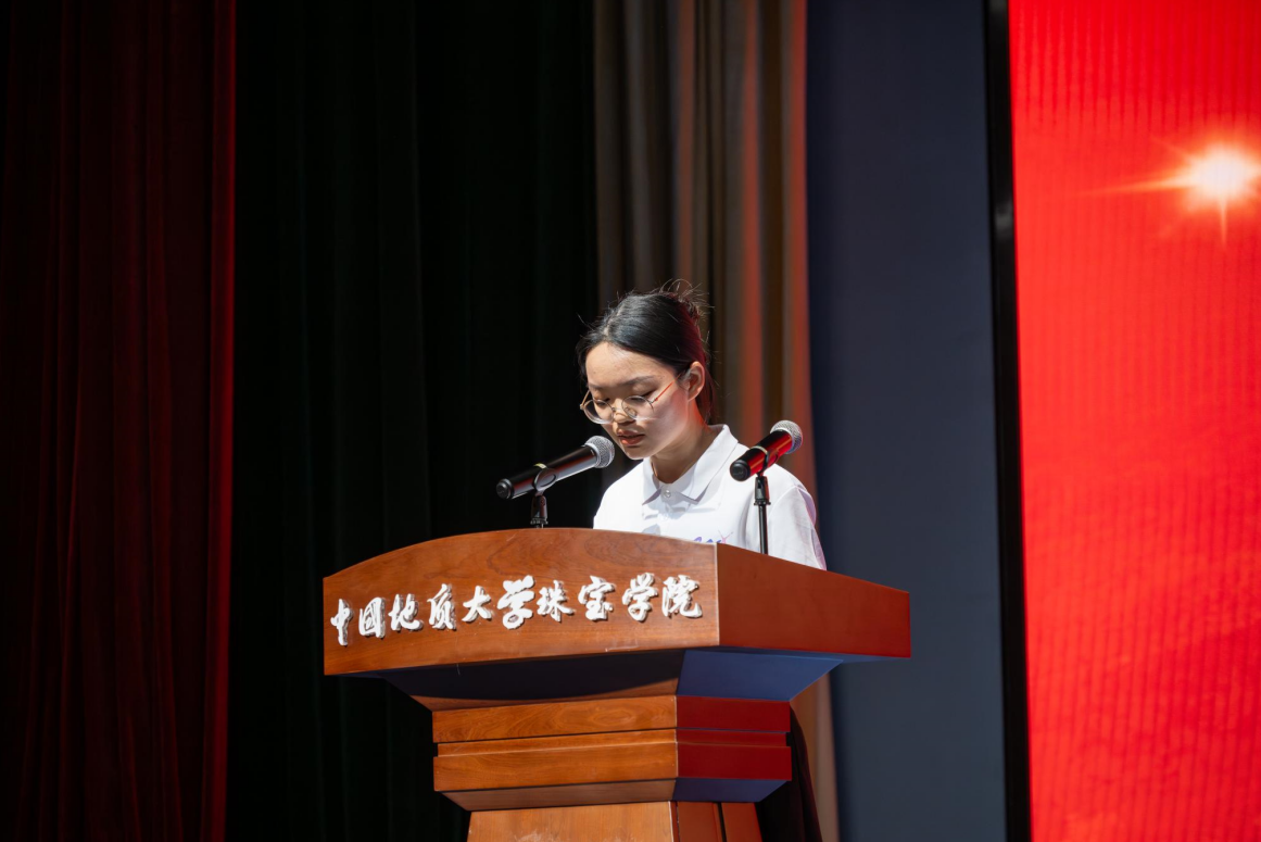 本科生新生代表方婉晶讲述了自己与地大结缘的故事,分享了对地大和捆绑调教 从陌生到渐渐熟悉的心路历程,也不断勉励自己和同学们,在新的征程上奋勇拼搏。