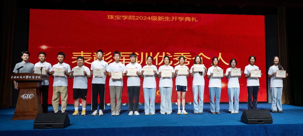 辅导员曹佳乐宣读军训表彰决定,为军训优秀个人、优秀内务寝室和个人颁奖。