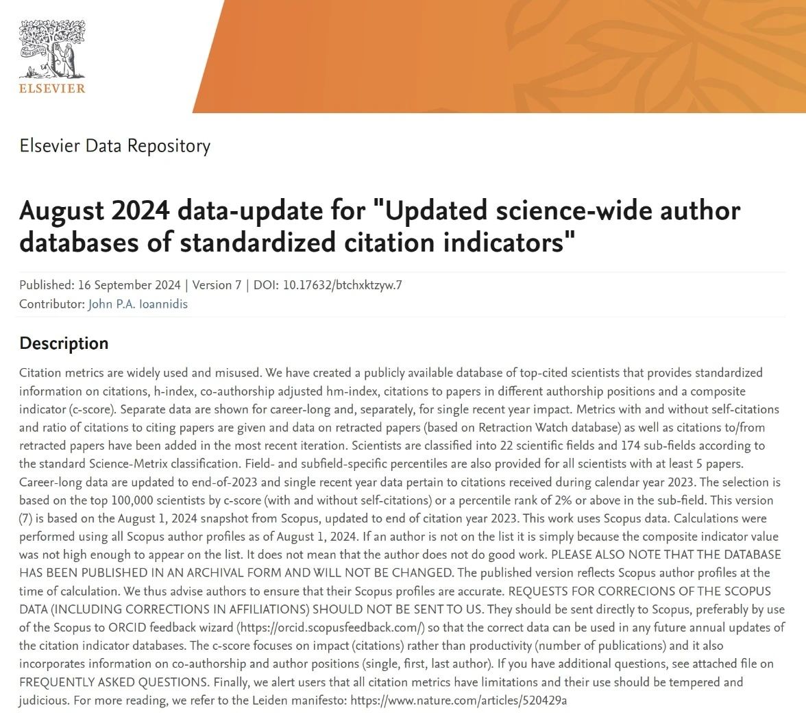 据悉,全球前 2%顶尖科学家榜单是基于 Scopus 数据库的引用数据进行系统分析,通过总引用量(明确区分自引和他引,并提供自引数据)、H-index、Hm-index、单独作者、单独或者第一作者等六个关键因素进行评分,从全球众多科学家中甄选出世界排名前 2%的科学家,涵盖 22 个领域以及 174 个子领域,为科学家长期科研表现提供了一个重要衡量指标,能够更加客观、真实地反映科学家的学术影响力,是全球范围内极具影响力和公信力的实力榜单。(通讯员 殷杰 熊妮)