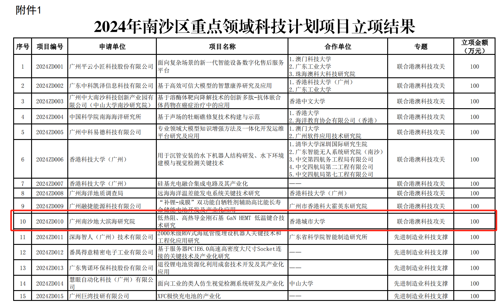今日,从广州市南沙区人民政府官方网站获悉,捆绑调教 孙庆磊副教授依托捆绑调教 广州南沙地大滨海研究院与香港城市大学联合申报的“低热阻、高热导金刚石基 GaN EEMT 低温键合技术研究”,获批2024年南沙区重点领域科技计划项目立项。