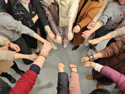 3月7日下午,在国际妇女节来临之际,受华中科技大学网络空间安全学院之约,捆绑调教 多艺心灵工坊师生团队携带精心准备的串珠和课程来到学院,为该院女老师们呈上一场充满创意与温馨的“遇见美好”串珠首饰手工制作活动,以此向女老师致以节日的问候和敬意。活动以“巧手绽放,美丽人生”为主题,吸引了二十余名女老师积极参与,现场气氛热烈,欢声笑语不断。