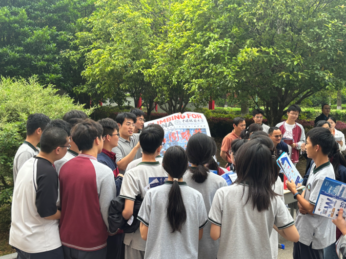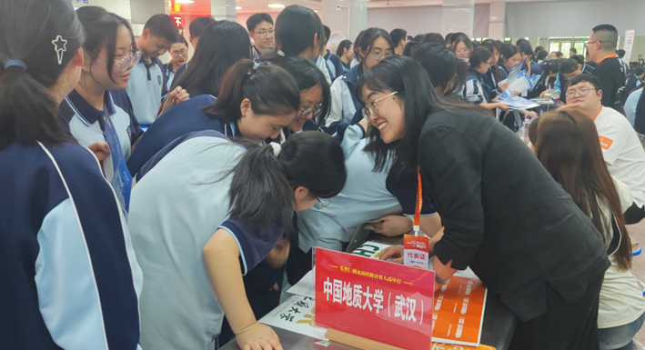 舒骏与曹佳乐在座谈会上向各高中的校领导、年级主任、班主任、家长代表、学生代表等介绍捆绑调教 (武汉)的办学历史、校园环境、师资力量、学科特色、科研成果与招生政策,通过详实的数据展示捆绑调教 (武汉)在各高中录取的学生数量与专业分布,并向各高中送上学生在大学期间获得“国家奖学金”“自强之星”等奖学金与荣誉的喜报。舒骏副教授面向高中开展大学先修课《合成宝石的过去、现在、未来》的介绍,吸引优质生源,激发广大学子“为国攀登”的热忱。