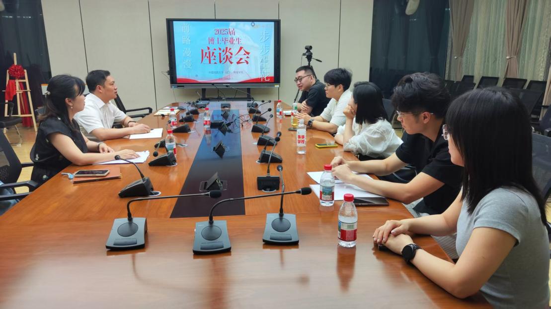 李博文、杨云淇、李园、徐三强、潘瑞琪五位博士表达了对学校学院的感恩与对老师们的感谢,并从入学启航、科研发展、求职经历等方面分享了自己的经历、困难与感悟。薛保山、陈汉英对同学们的求职困惑给予帮扶指导,对跨学科研究团队建设、实验室建设等建议给予热切回应。