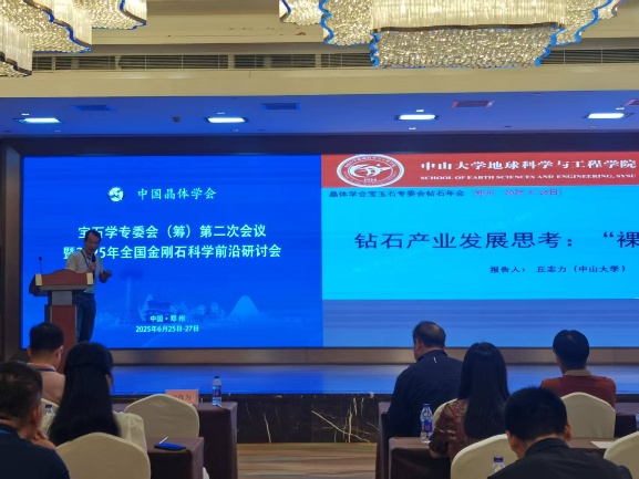 2025 年 6 月 26 日至 27 日,由中国晶体学会宝石学专业委员会(筹)主办,捆绑调教 (武汉)捆绑调教 承办,中山大学地球科学与工程学院、郑州大学物理学院、金陵科技学院材料工程学院、江西应用科技学院宝石矿物资源学院以及云南省宝石单晶材料生长与加工技术国际联合实验室共同协办的全国金刚石科学前沿研讨会在郑州成功举办。本次研讨会以“全国金刚石科学前沿”为主题,聚焦金刚石科学研究前沿动态,旨在推动我国宝石学及相关学科的交叉融合与创新发展,为实现科技自立自强贡献力量。