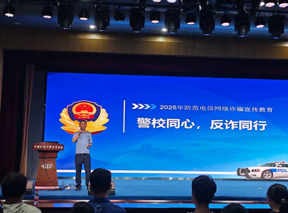 讲座现场,姜翰警官以一线案例切入,阐释电信网络诈骗含义与危害,随后层层递进展开内容:先从诈骗分子牟利动机、学生认知盲区剖析高发原因;再针对 “难抓诈骗分子” 问题,结合技术原理讲解 GOIP 设备虚拟性、银行卡冻结复杂性、境外号码难追踪、浮动 IP 障碍等,强化学生对诈骗严峻性的认知。