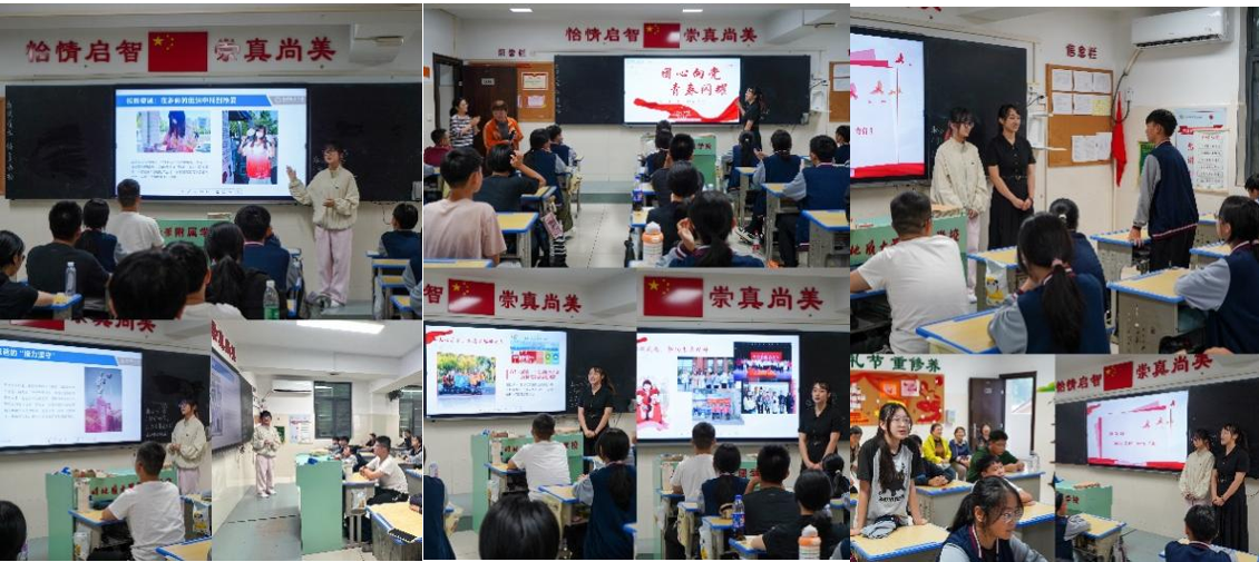 退休第五党支部的朱勤文老师以“我和中国共产党”为题开展教育分享。她从国家发展历程切入,通过图文并茂的PPT和“九三阅兵”等鲜活案例,生动讲述了国家在党领导下的伟大飞跃,并深情勉励同学们珍惜当下、树立远大理想,未来以真才实学报效祖国。朱老师的话语中充满对青少年成长的殷切期望,也让“党建引领”的活动核心愈发鲜明。