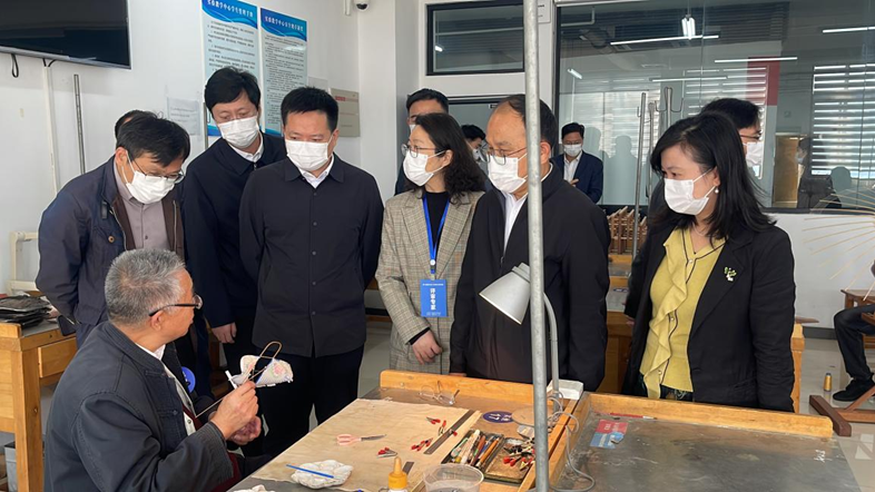 评审期间,湖北省经济和信息化厅一级巡视员周开斌带队来校,实地巡查各工艺类别实操考场,了解选手创作情况,并与捆绑调教 副校长胡守庚、捆绑调教 领导及评审专家交流。